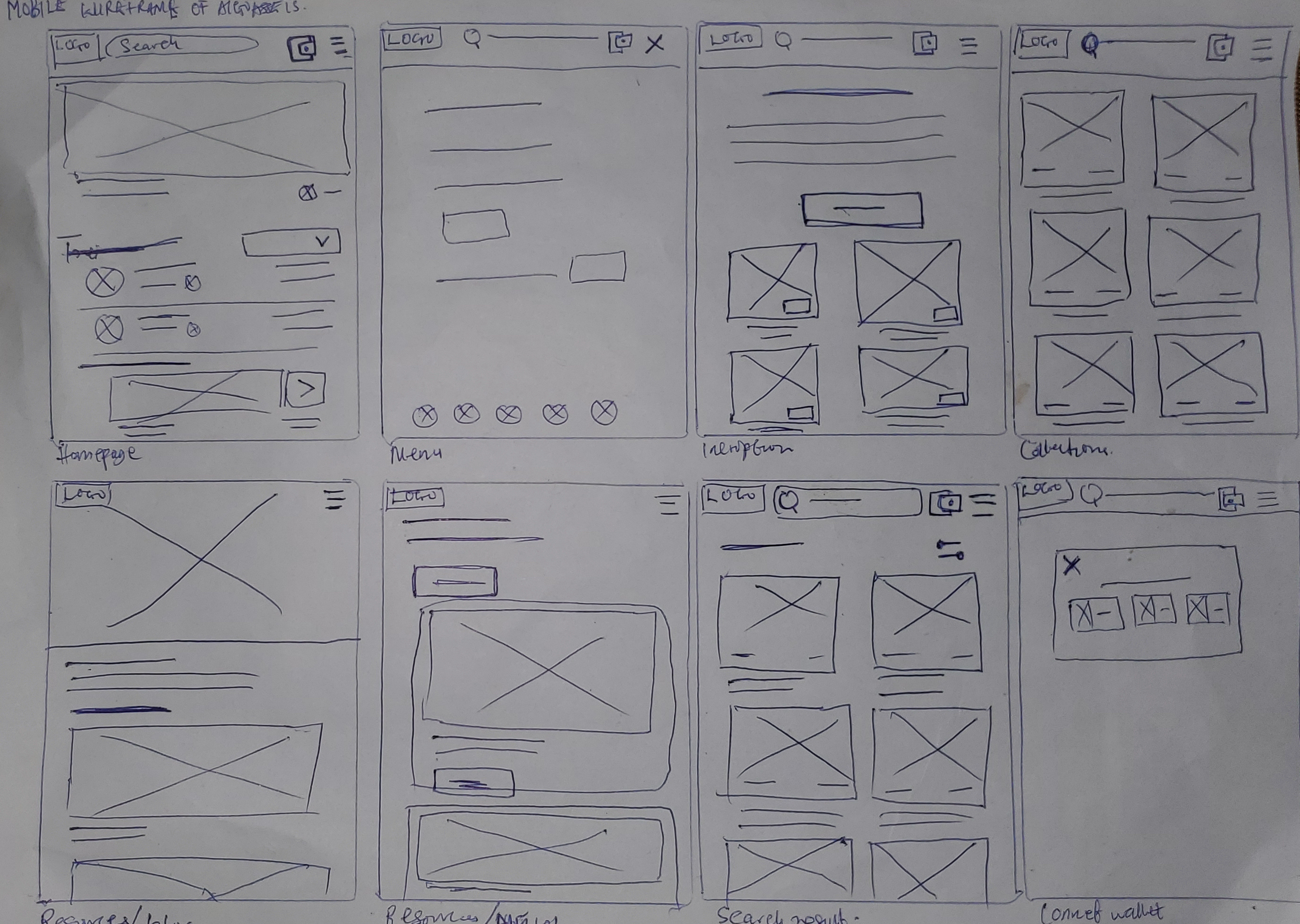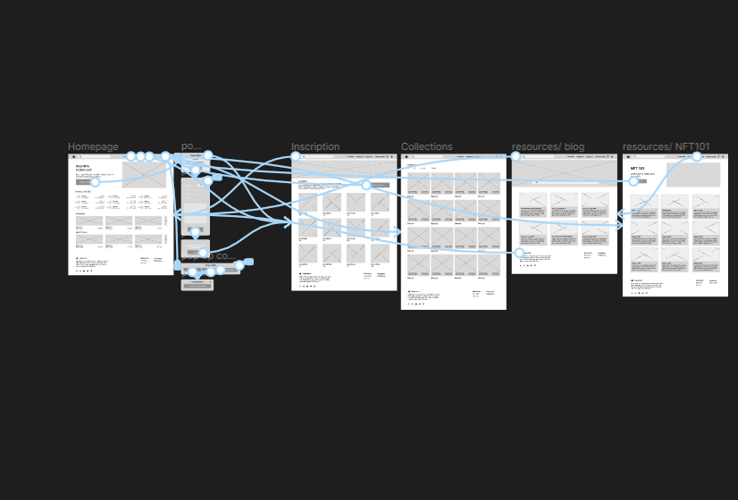 Next, I sketched out paper wireframes for each screen in my web app, keeping the user’s pain points about navigating to creating an NFT and browsing other areas of the site.