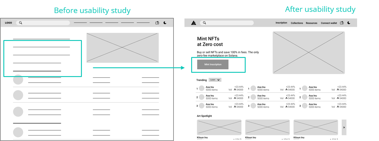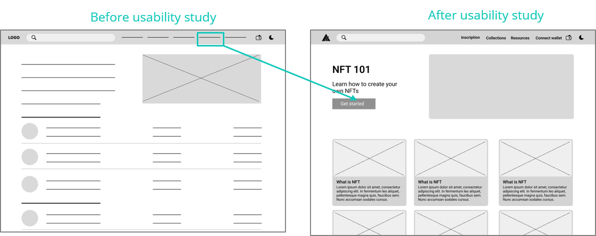 To make it easy for users to carry out the primary goal on the website, a button for creating NFTs is added to the home screen of the page. To make it easy for users who do not know how to create NFTs/digital artworks, a new page is added to the website with the information on how to create NFT, it’s titled NFT 101